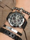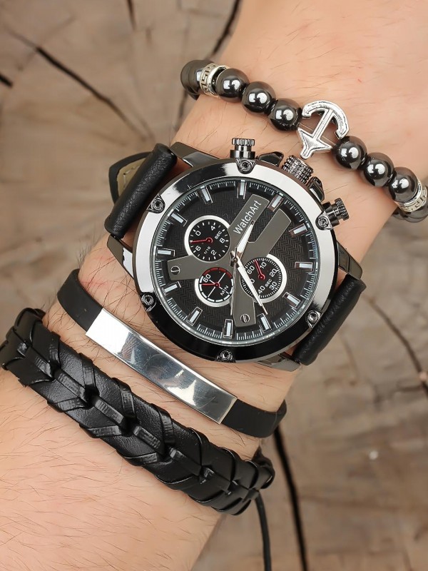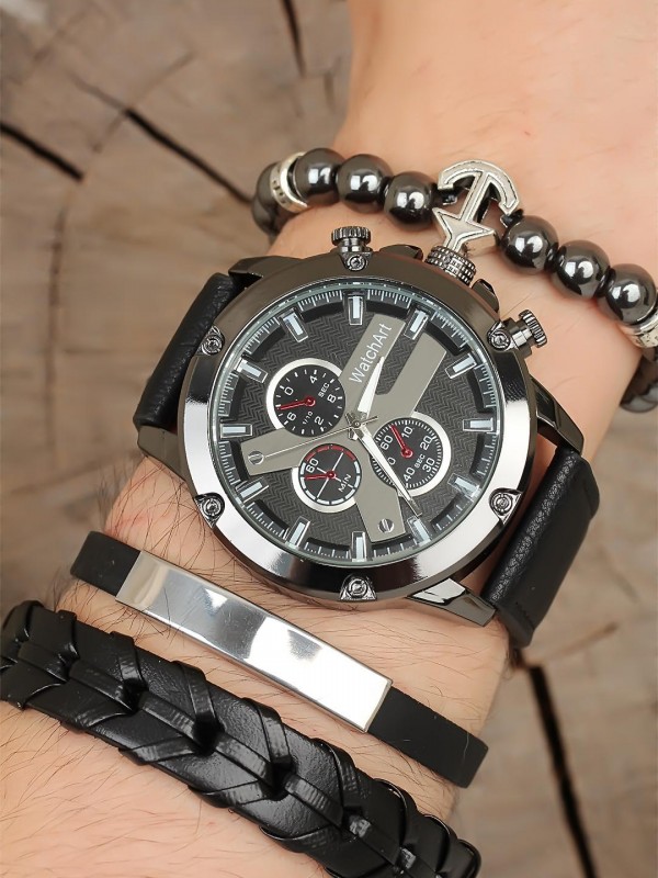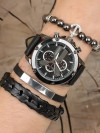 Deri bileklik tasarımlı siyah renk Deri Kordonlu Erkek Saat Kombini