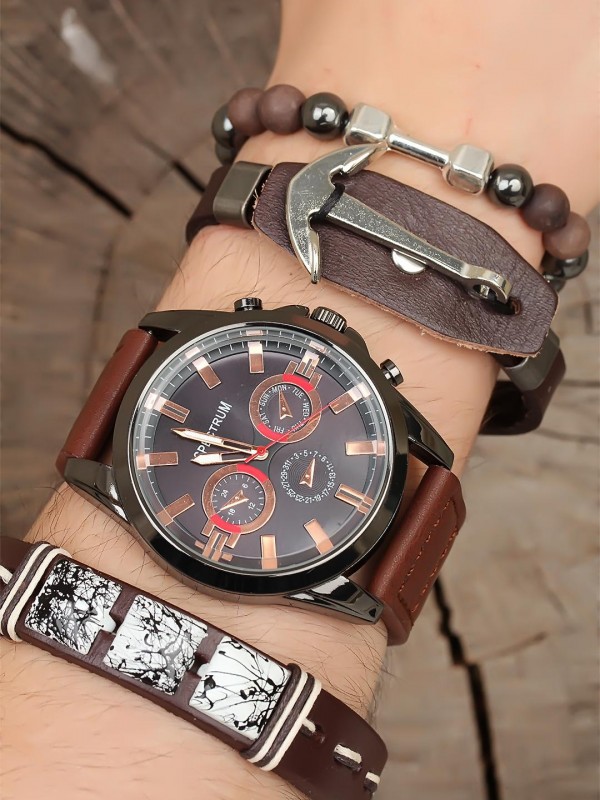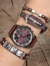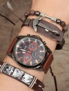 Deri bileklik tasarımlı siyah renk Deri Kordonlu Erkek Saat Kombini