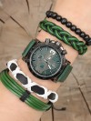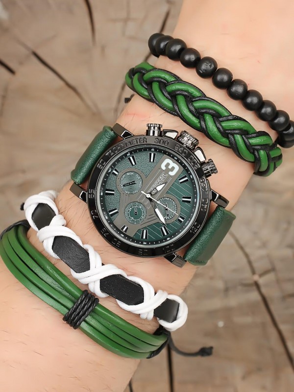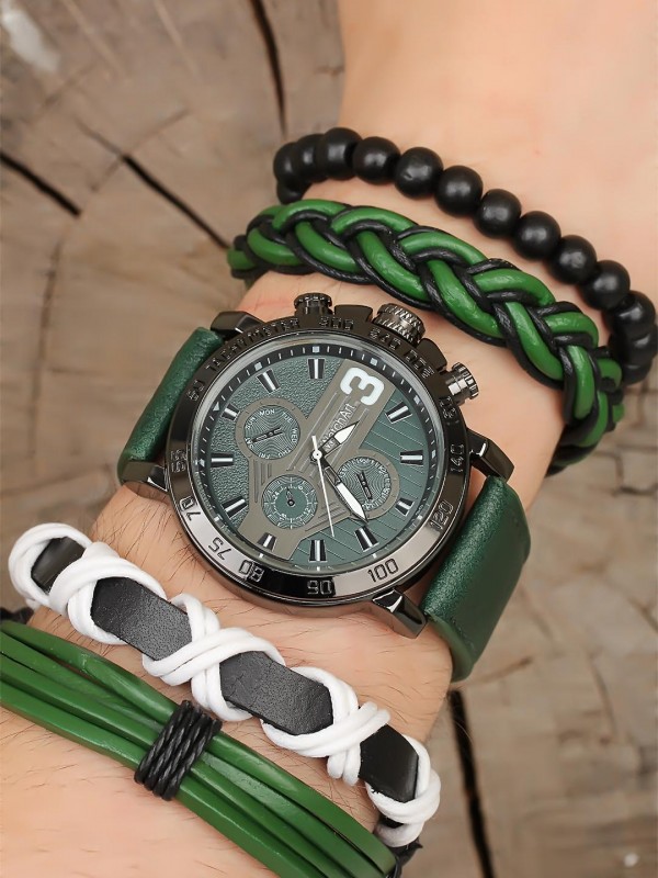 Doğal taş ve deri bileklik tasarımlı lacivert renk Silikon Kordonlu Erkek Saat Kombini-Saatin yanında kaç adet bileklik varsa saat ile birlikte hepsi geliyor (hepsi fiyata dahil.)