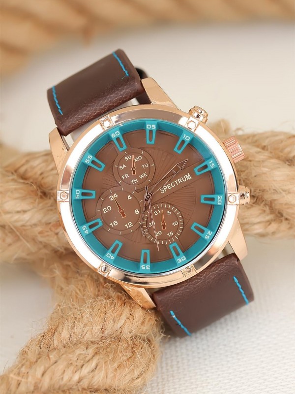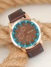 Farklı bir şıklık için Kahverengi Deri Kordonlu Rose Renk Spor Metal Kasa Erkek Kol Saatine sahip olun.