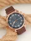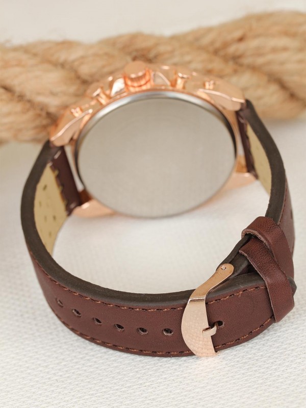 Kahverengi Deri Kordonlu Rose Spor Metal Kasa Erkek Kol Saati