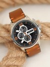 Spor şık beyler için Kahverengi Deri Kordonlu Silver Renk Metal Spor Kasa Erkek Kol Saati özel olarak tasarlandı.