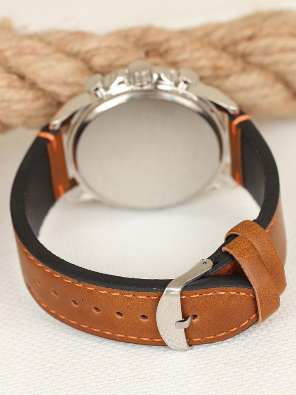 Kahverengi Deri Kordonlu Silver Renk Metal Spor Kasa Erkek Kol Saati