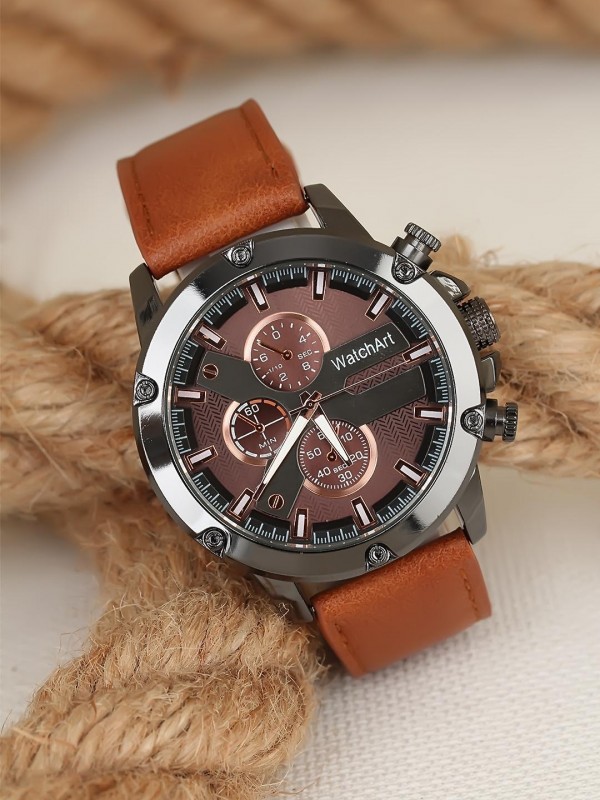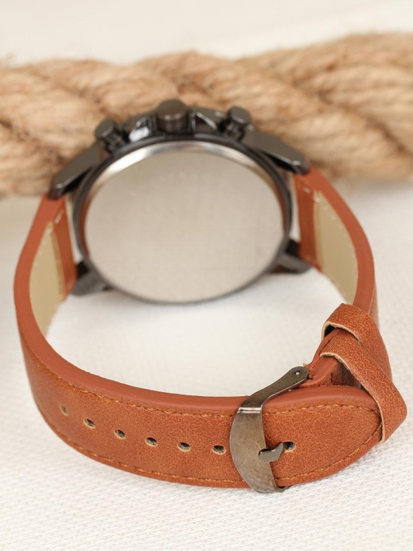 Trend tasarımlı Kahverengi Deri Kordonlu Füme Renk Spor Kasa Erkek Kol Saatine sahip olun.