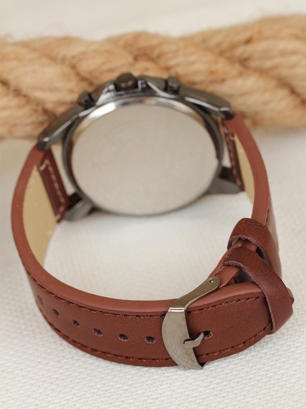 Zamanın tadını Kahverengi Deri Kordonlu Füme Renk Spor Metal Kasa Erkek Kol Saati ile şık bir şekilde çıkarın.