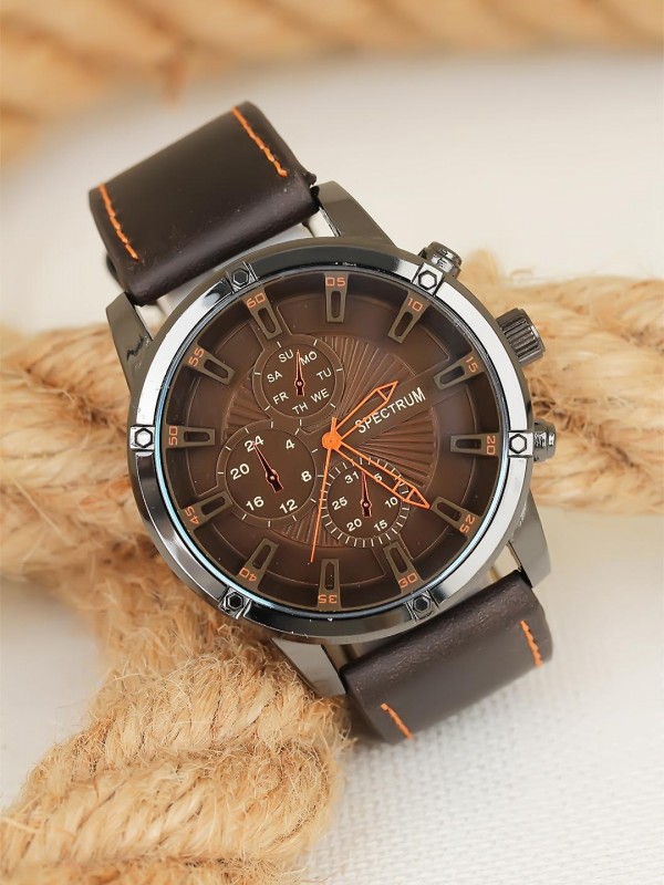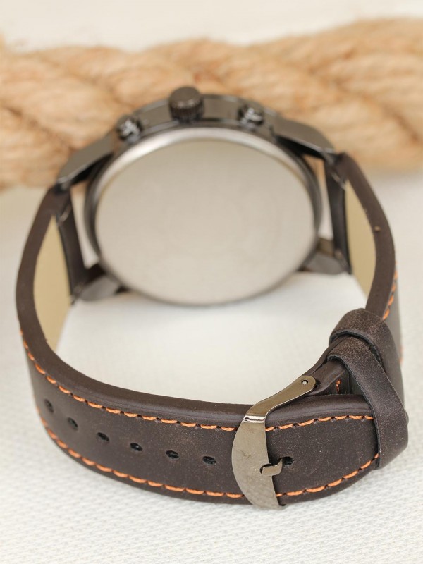 Kombinlerinizi Kahverengi Deri Kordonlu Füme Spor Kasa Erkek Kol Saati ile detaylandırın.