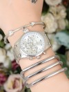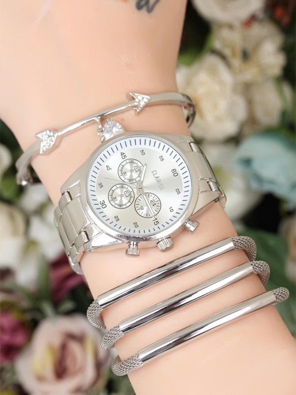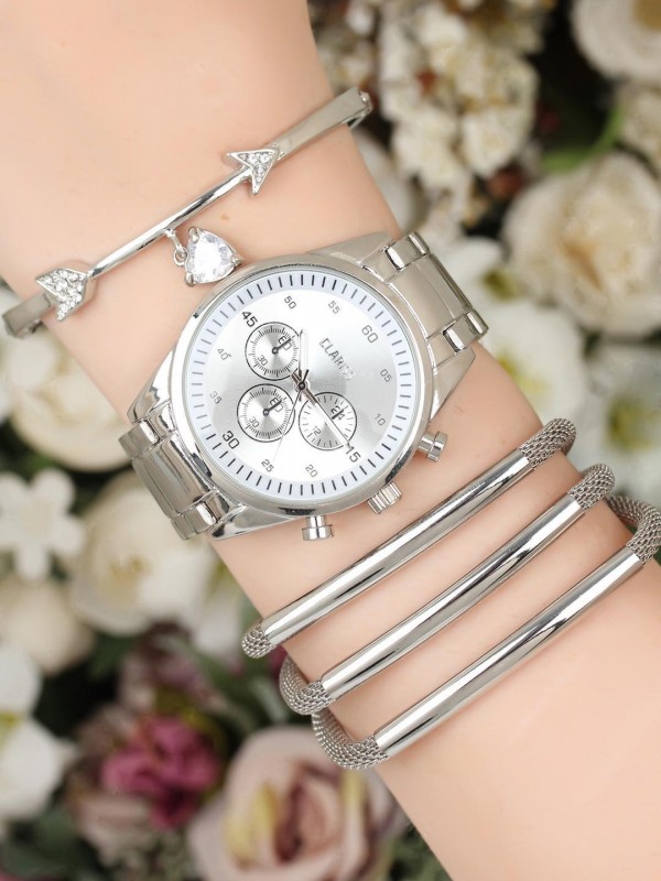 Gümüş Renk Metal Kordonlu Clariss Markalı Bayan Saat ve Metal Bileklik Kombini