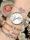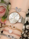 Çoklu ve kelebekli bileklik tasarımlı silver renk Metal Kordonlu Bayan Saat Kombini