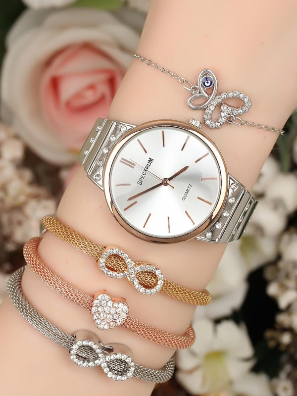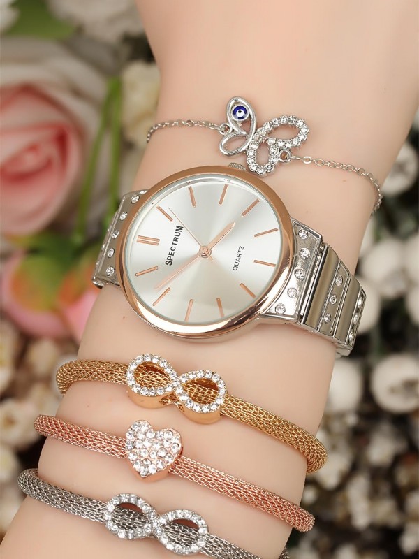 Metal Kordonlu Bayan Saat Kombini