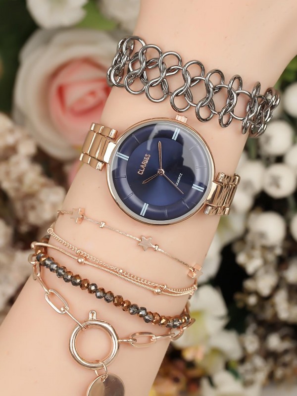 Metal ve boncuklu bileklik tasarımlı rose renk Metal Kordonlu Clariss Marka Bayan Saat Kombini