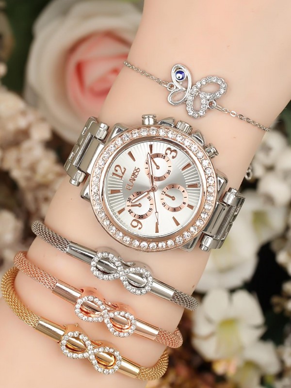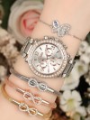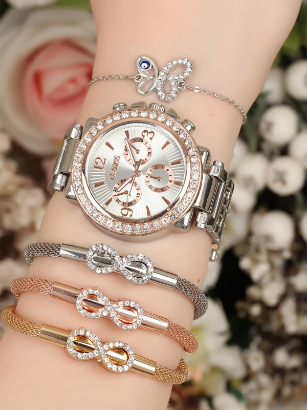 Sonsuzluk ve kelebek bileklik tasarımlı silver renk Metal Kordonlu Clariss Marka Bayan Saat Kombini -Saatin yanında kaç adet bileklik varsa saat ile birlikte hepsi geliyor (hepsi fiyata dahil.)
