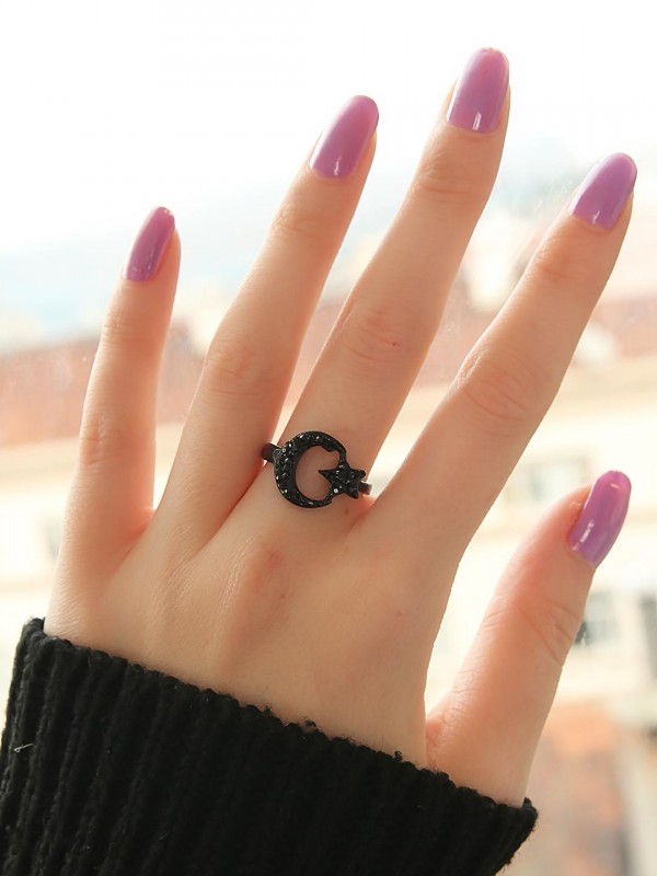 Tarzınızı Siyah Metal Zirkon Taşlı Ay Yıldız Bayan Yüzük ile kolayca şıklığa taşıyın.
