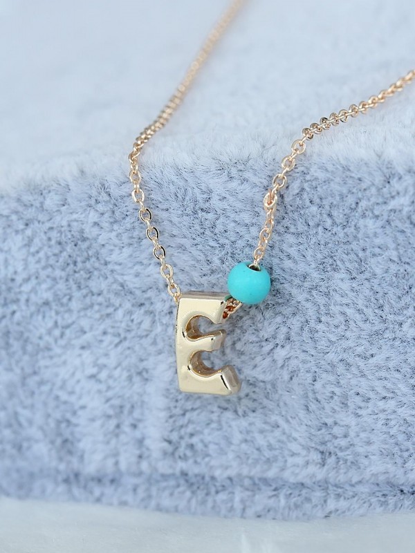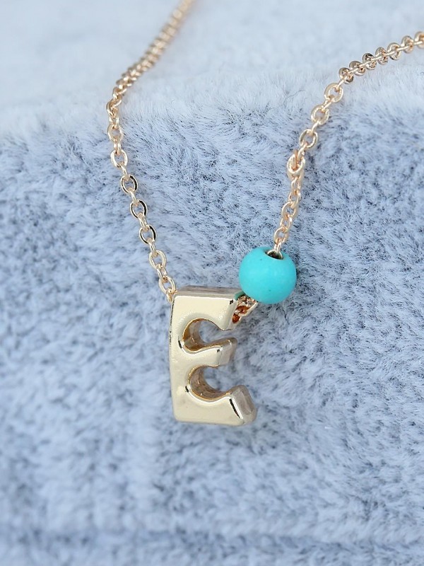 Gold Renk Boncuklu Bayan E Harfli Kolye