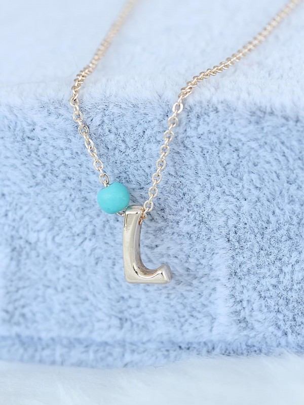 Gold Renk Boncuklu Bayan L Harfli Kolye