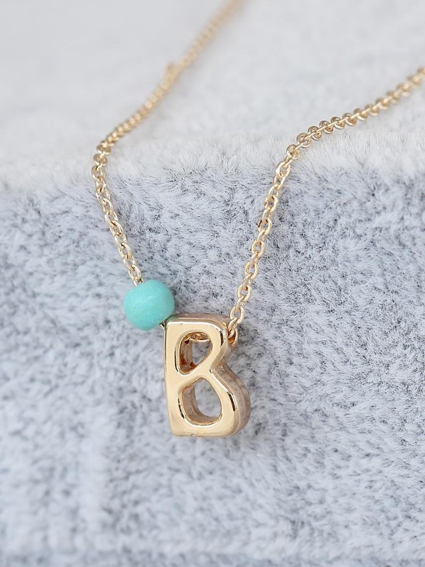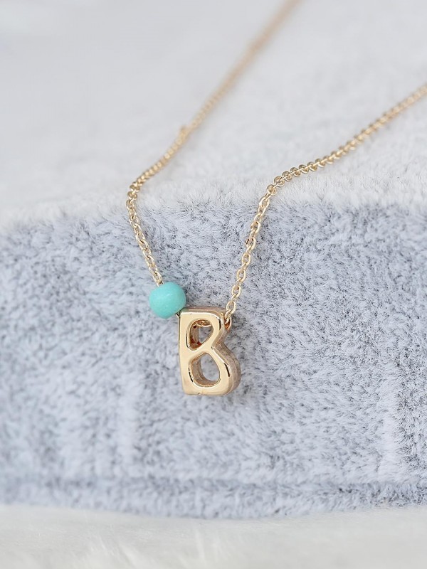 Gold Renk Boncuklu Bayan B Harfli Kolye