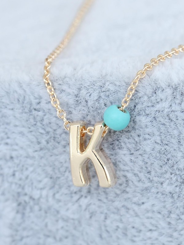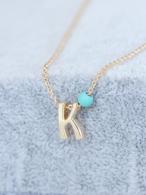 Gold Renk Boncuklu Bayan K Harfli Kolye