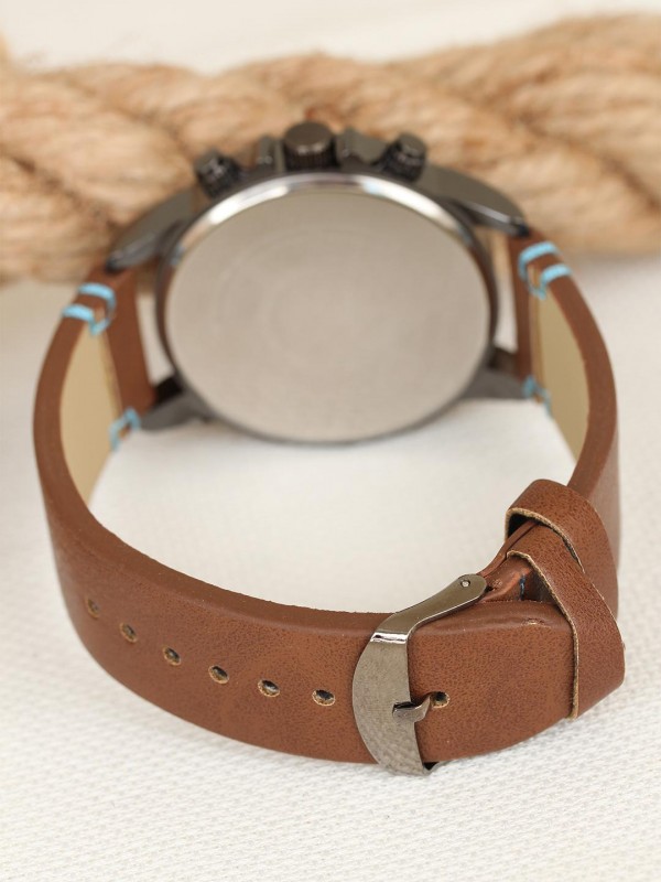 Kendinizi Kahverengi Deri Kordonlu Füme Renk Metal Spor Kasa Erkek Kol Saati ile spor şıklık içerisinde göreceksiniz.