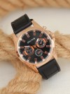 Siyah Renk Kordonlu Rose Metal Kasa Erkek Saat
